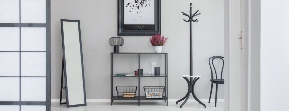 Si l’espace autour de votre porte d’entrée est restreint, tentez de prolonger le rangement dans la pièce d’à côté, que ce soit le couloir ou le salon adjacent en y ajoutant par exemple une armoire de rangement. Vous n’aurez que quelques pas de plus à faire pour déposer votre sac à main ou votre manteau après avoir franchi la porte. Libre à vous de faire preuve de créativité avec un ensemble de crochets, d’étagères et de miroirs qui servent à la fois de rangement et de décoration.
